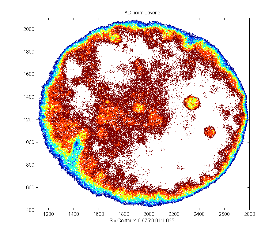 I think I will figure out how to find the max in the center of the image, normalize to that, take differences among the different diffusers, and make contour plots. I got stuck in finding the max because of the high points outside the image but I’m going to try to eliminate them in the photo. |