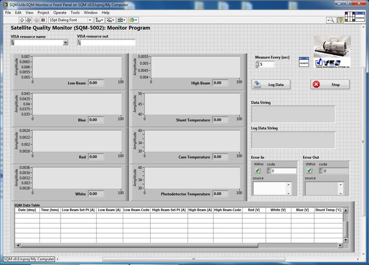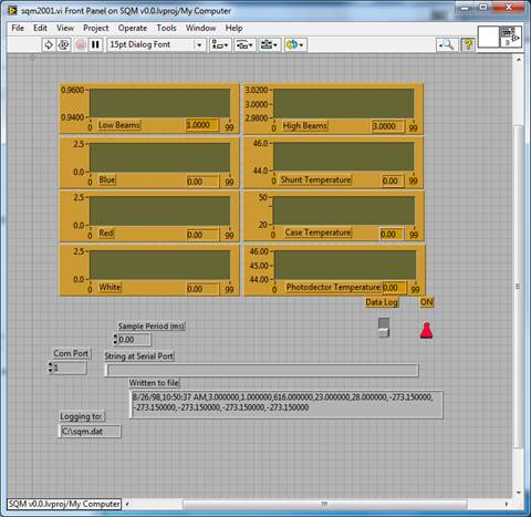Fig. 2 Screen shot of updated SQM Monitor.vi version 0.0 (LabVIEW 2013).