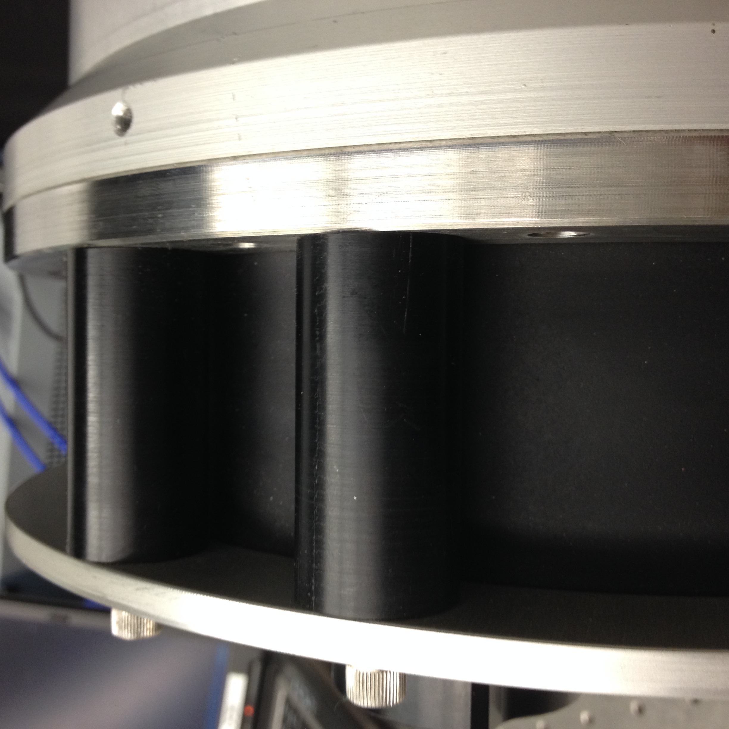 | The YES SQM adaptor plate holds the DUT in place with the black locking rings |